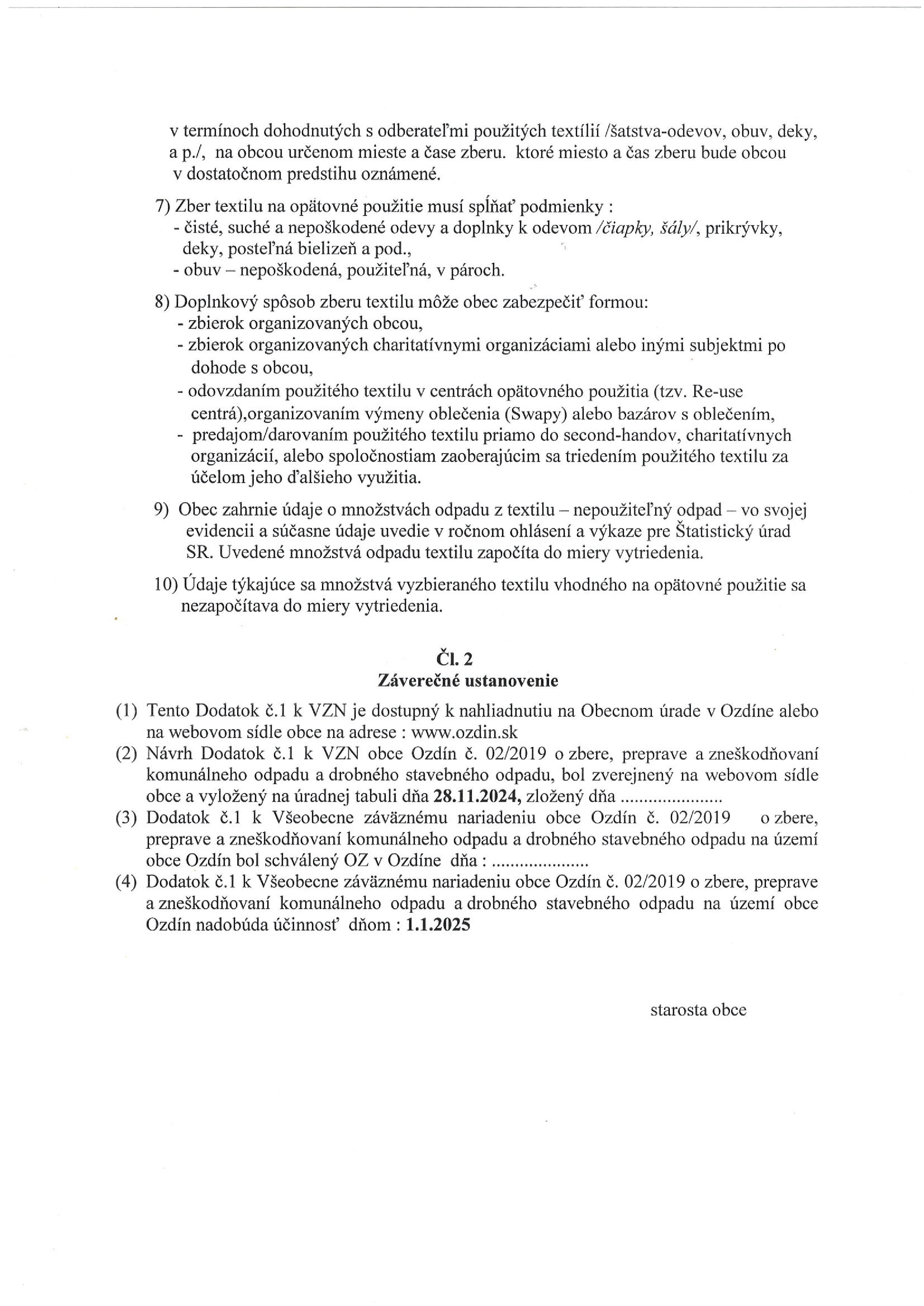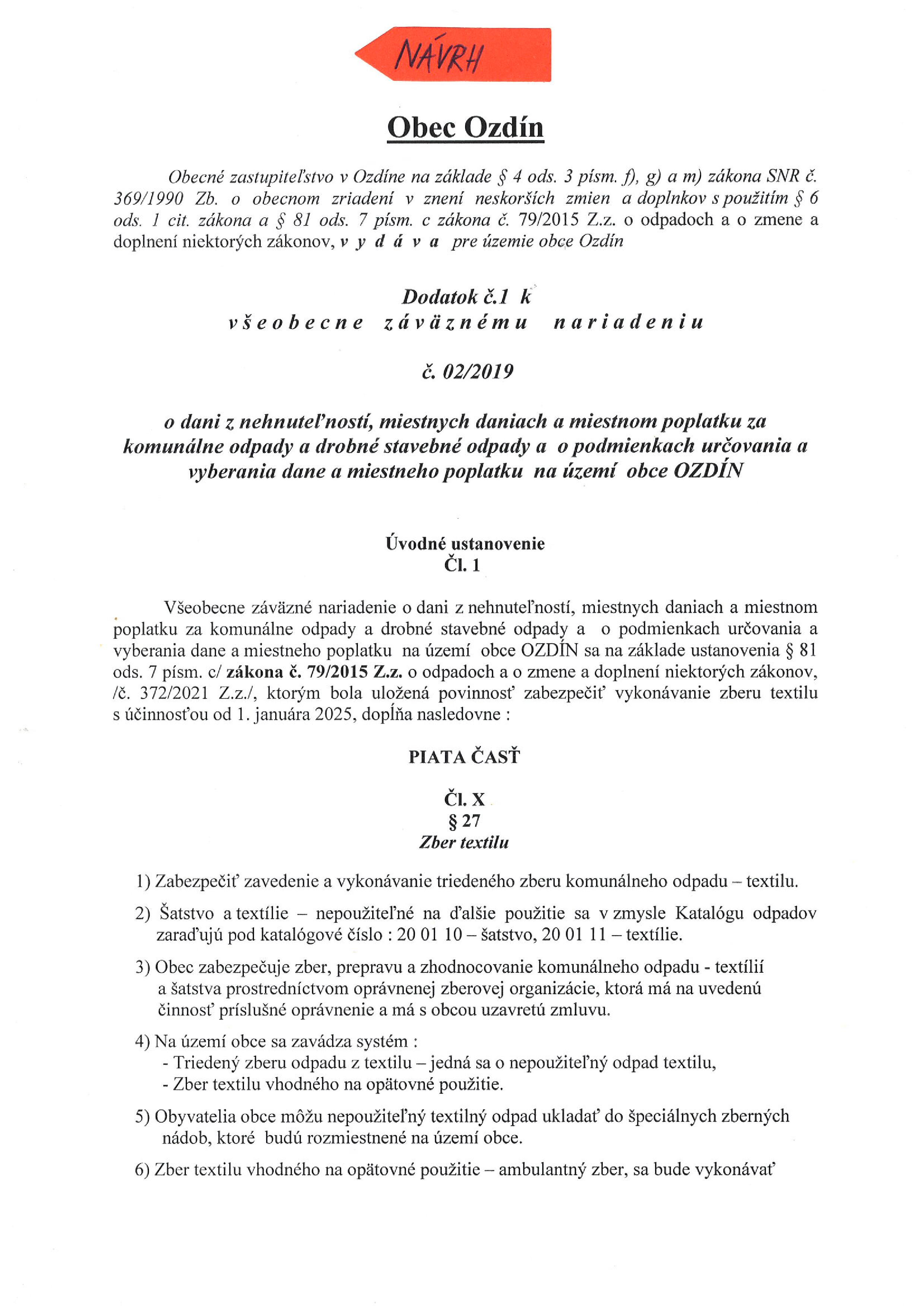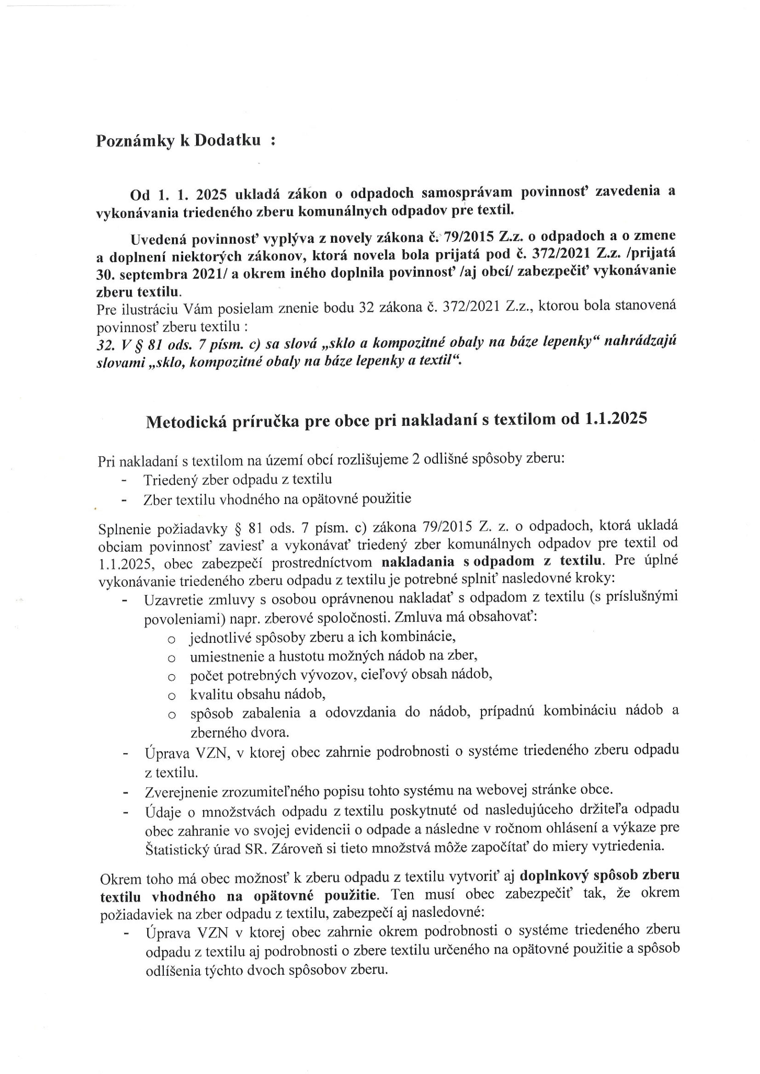 Návrh - Dodatok č. 1 k VZN - zber textilu